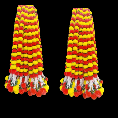 Name : Artificial marigold flowers and hanging bells (red +yellow 5 pieces)