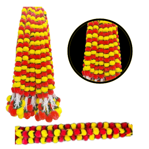 Artificial Marigold Fluffy Flowers & Golden/silver Bells Garlands/Torans/Latkans/Backdrops/Wall hangings for decoration. Made in India. A completely handmade product for year around home decor requirements. Length of single string is approx 5 ft from top to bottom (measuring end to end). The string contains around 30 flowers. Each string has golden/silver hanging bell tied at the end. The bell is for decorative purpose. It doesn’t ring. For convenient logistics transition, the product would be packed in compressed state. This would compress the flowers but no need to worry as these are fluffy in . Gently rub the garlands from top to bottom to get the fluffiness. Once bloomed, it will remain full bloomed until the user repacks it or compress it. Suitable for festive decor, wedding wall decor, stage decor, temple decor etc. Disclaimer : The product color may slightly vary due to photographic lights or user’s systems settings.