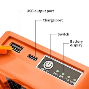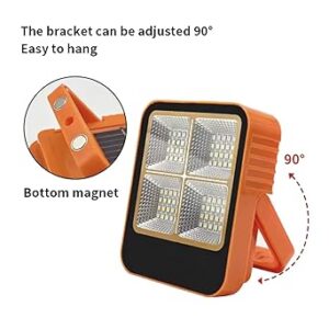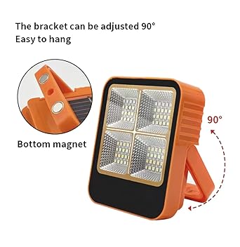 - Solar & USB Rechargeable Work Light – The Solar LED job site light can be charged by USB-C cable or solar power. The built-in rechargeable battery takes about 2-4 hours to fully charge. It can also be charged in the sunlight for 6-8 hours via solar energy. It can continue to work for up to 4 hours after a full charge.